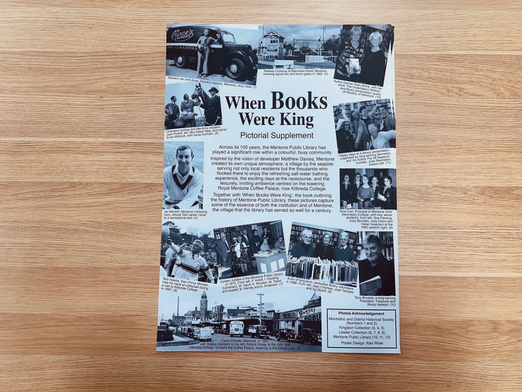 Our potted history of the 100 year history of the Mentone Public Library has been launched and is now available for sale at the library. It’s called “When Books Were King” and it’s a wonderful walk-through the library in the context of the wider literary events that have shaped the last 100 years.